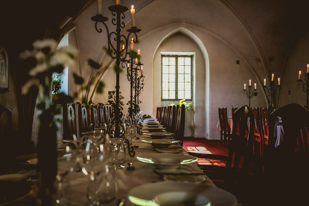 Ni kommer sitta tillsammans med andra gäster vid långbord.